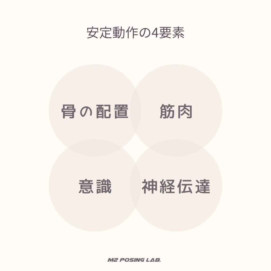 ポージングの動作を安定的にする4つの要素をこのように考えております。