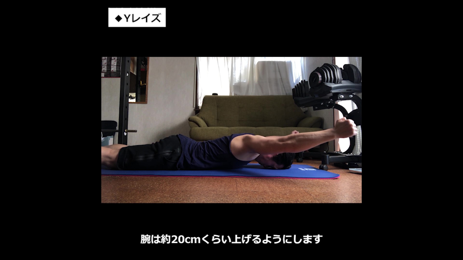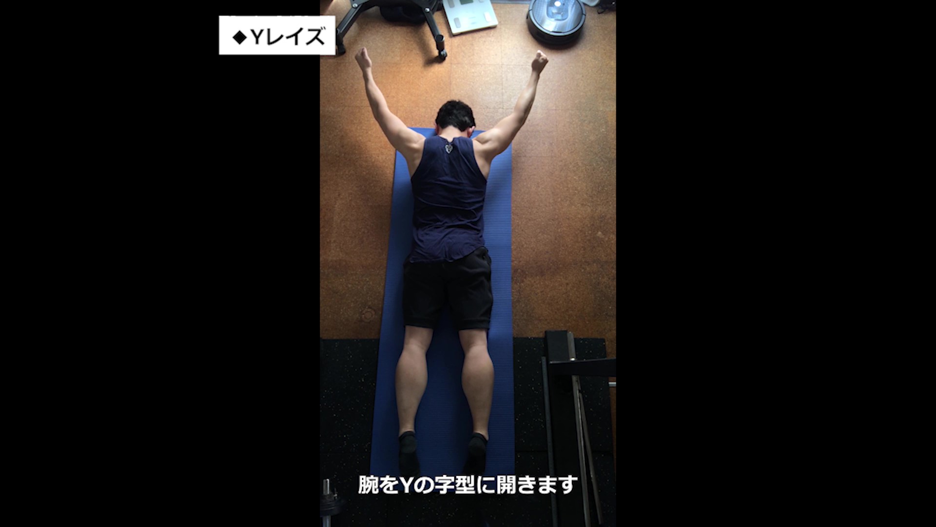 このYレイズで僧帽筋下部を鍛えて、肩甲骨の位置を正しい位置にしていきましょう。